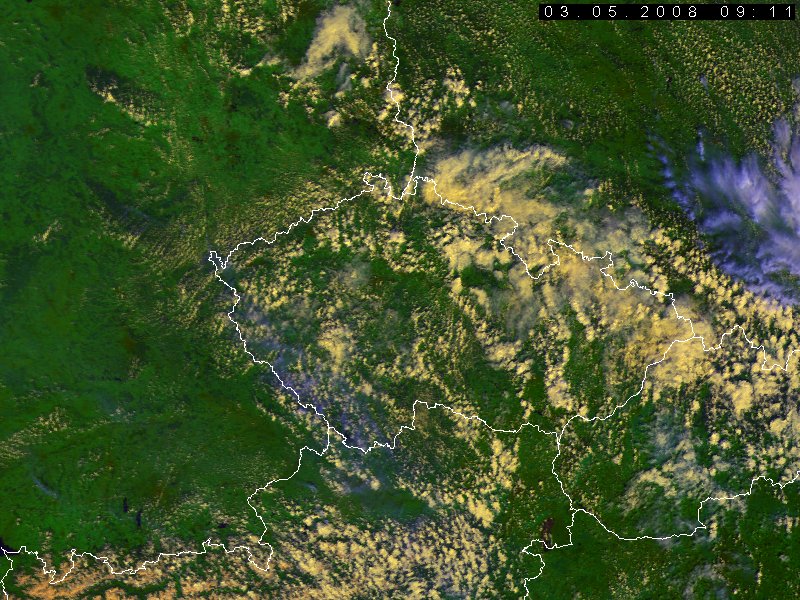 Zpočátku polojasno, 4/8 střední a nízké oblačnosti. Během poledne a odpoledne bouřlivý vývoj mohutné kupovité oblačnosti Cu med, Cu cong 1500-1800 m MSL s proměnlivým pokrytím 4-7/8 místy s přeháňkami a ojediněle Cb s bouřkami.